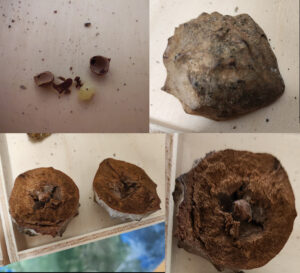 Nagy magyar gubacsdarázs (Andricus hungaricus) gubacsa és benne lárvája